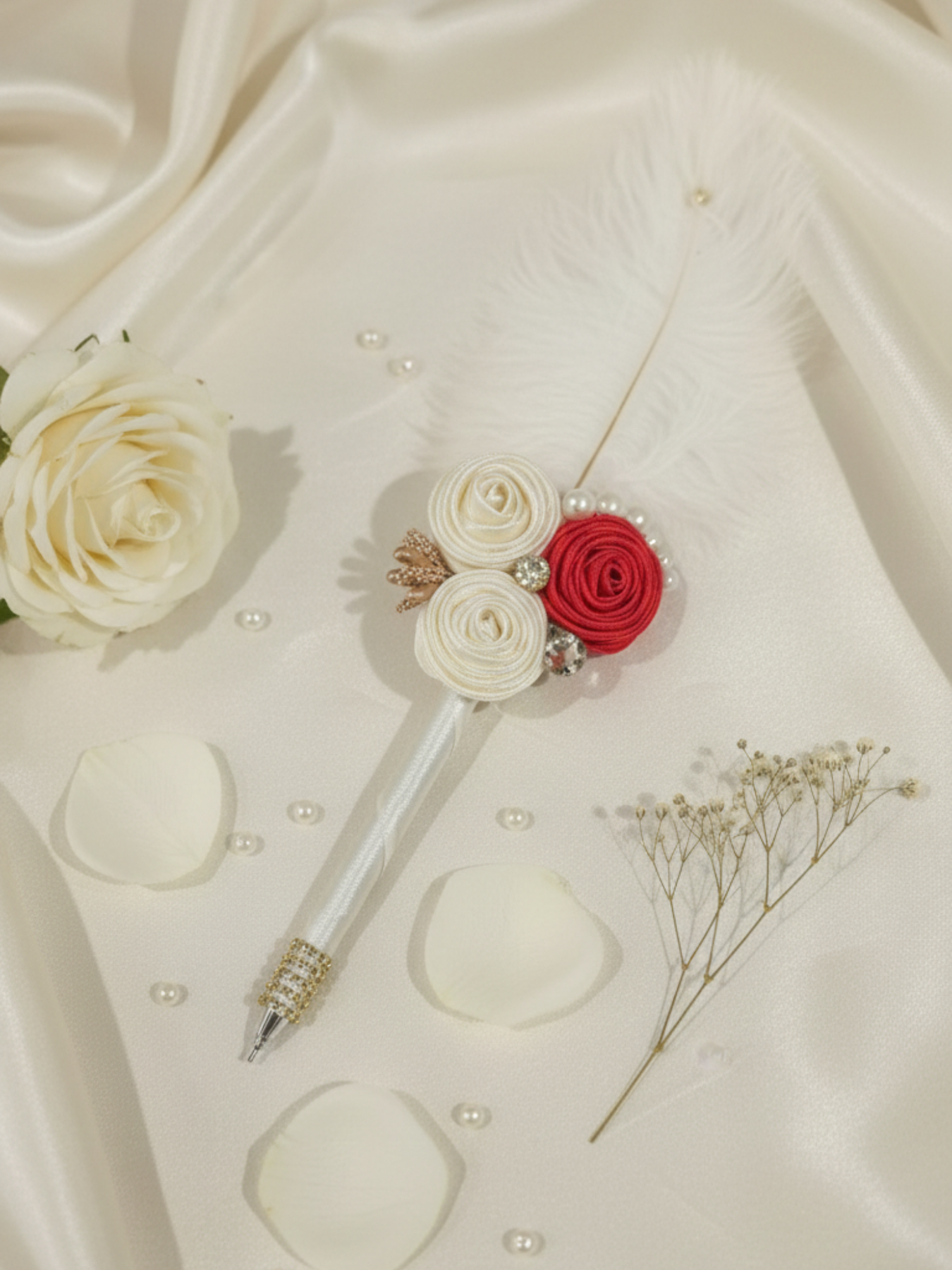 Handcrafted White and Red Nikah Pen