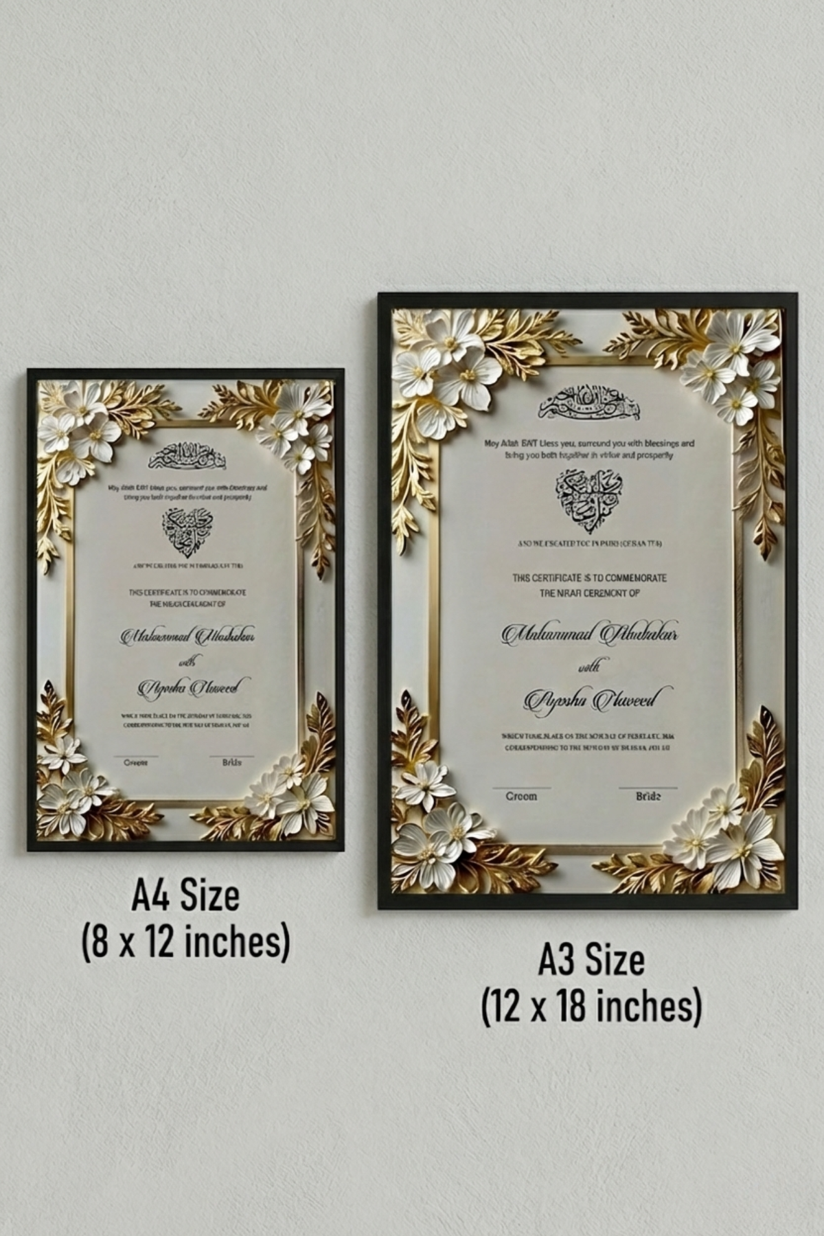 Make your special day even more unforgettable with our exquisite Royal Taj 3D Print Nikah Frame. This stunning frame is designed to hold your precious wedding certificate, serving as a lovely reminder of your love and commitment.